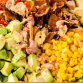 - Add all dressing ingredinets to a mason jar. Cover and shake well to combine. Pour over salad, toss to combine.