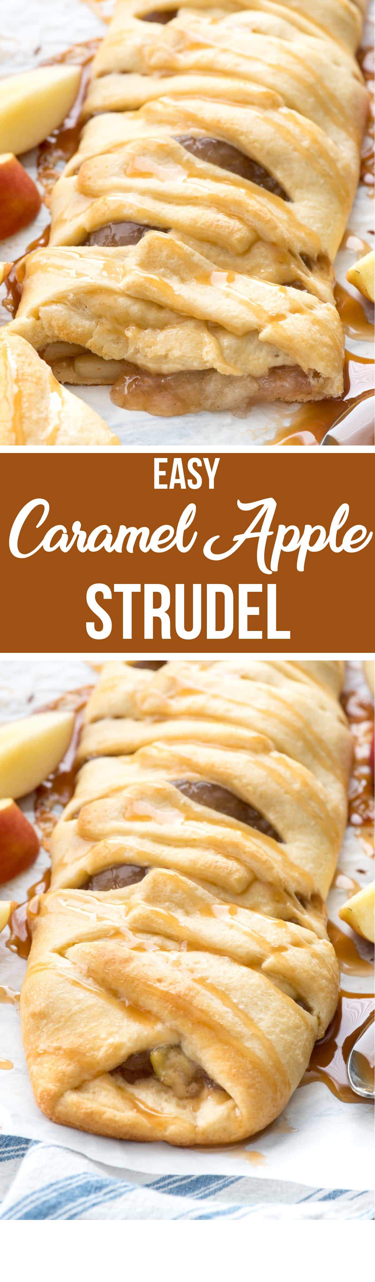 Easy Caramel Apple Strudel – this easy danish braid has just 3 ingredients and is the easiest breakfast or dessert recipe ever! Caramel Apple is the perfect fall flavor, especially in a pastry!