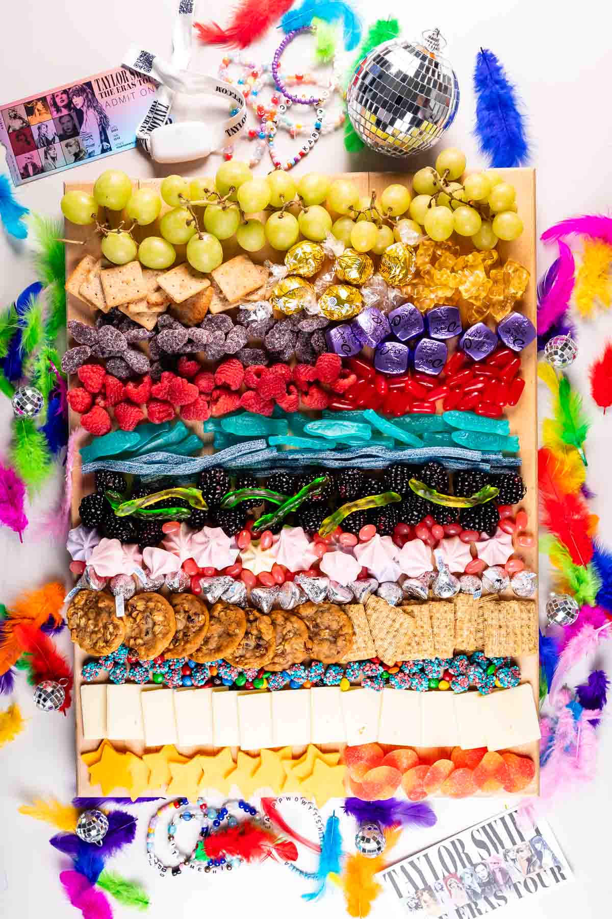 - Showgirl, Orange: Cheddar cheese cut into stars, peach gummies, Cheez-Its crackers or so many other orange ideas (check out my Showgirl Charcuterie).