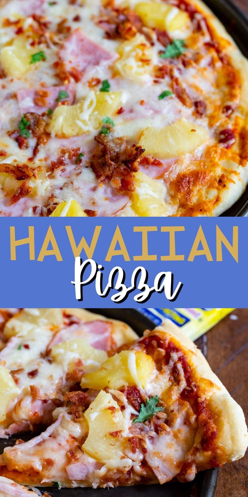 I’ve always said pineapple didn’t belong on pizza….but I was wrong. Hawaiian pizza is delicious – especially with BACON on it! Fresh pineapple, crispy bacon, savory ham, delicious cheese and a homemade pizza crust – this is going to be your Friday night favorite!