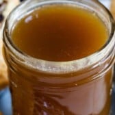- Pour the caramel carefully into a jar and let cool to room temperature. Cover and store in the refrigerator. When ready to use, remove the lid and heat in 30 second increments until the caramel is melted and smooth and the desired consistency (about 60-90 seconds for the just-made texture). Will keep for 2 weeks in the refrigerator.