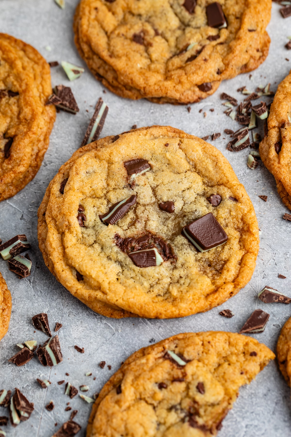Mint Chip Cookies combine my two loves: mint chips and chocolate chips! These are chewy and soft chocolate chip cookies with mint chips inside – you will love these chewy cookies inspired by my best chocolate chip cookie recipe.