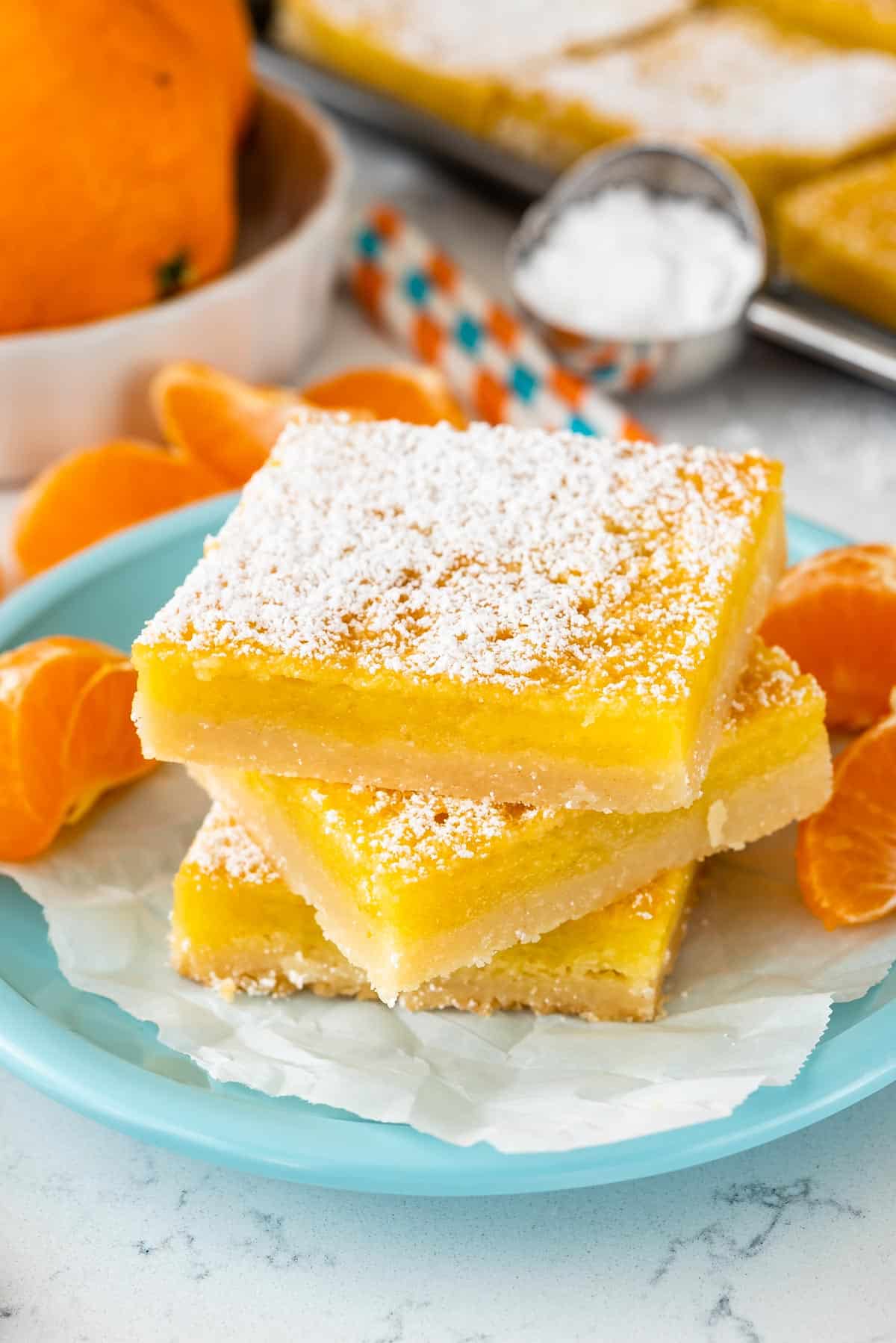 - You can use any kind of oranges – I’ve made these with naval oranges and fresh mandarin oranges. Blood Orange bars would also be delicious.