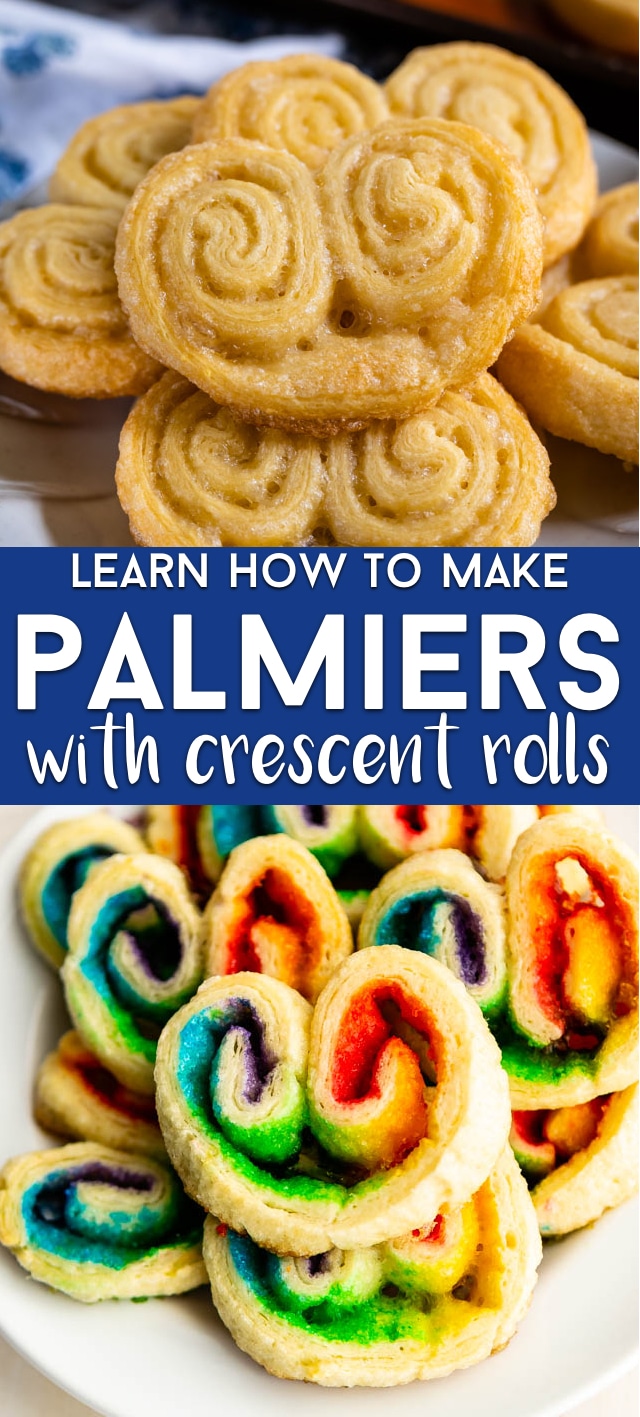You can learn how to make my easy Palmier Cookie Recipe using crescent rolls! Skip making them from scratch and use 2 ingredients! So easy and you can any color sugar.
