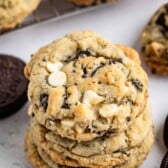 These soft and chewy Cookies 'n Cream Cookies are the best chocolate chip cookie recipe with tons of Oreos and white chocolate. The best Cookies 'n Cream cookies - better than Crumbl!